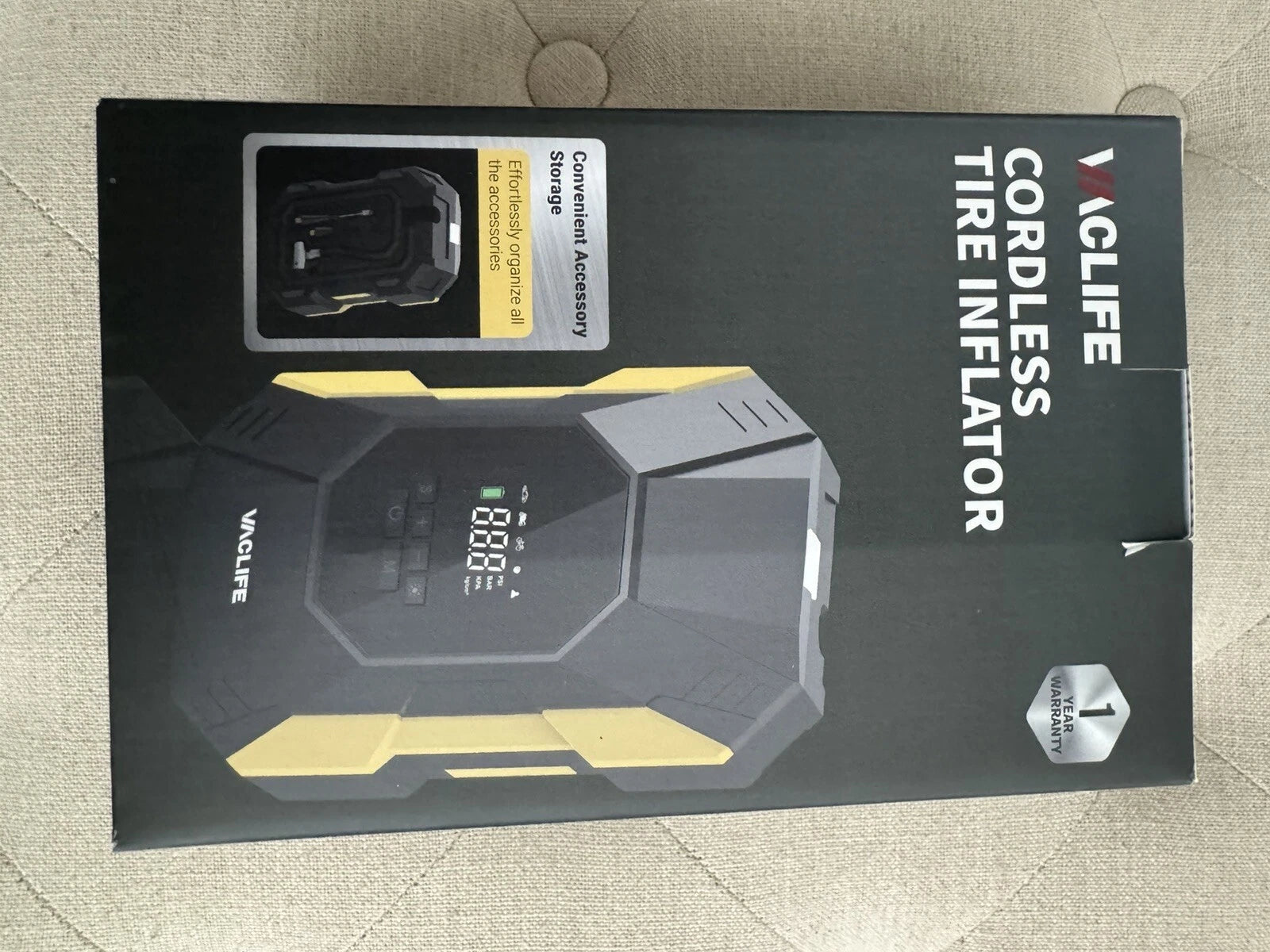 CORDLESS & EASY-TO STORE: No external power supply is needed, VacLife portable tire inflator for cars with a rechargeable battery pack can help you inflate most inflatables anytime and anywhere. On the bottom of the device, there's room for you to effortlessly organize all the accessories. No fear of missing the attachments anymore!